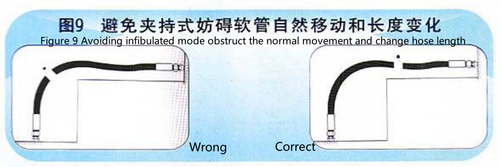 10.夹持软管时,避免采用妨碍软管自然移动和长度变化的夹式。(见图9)