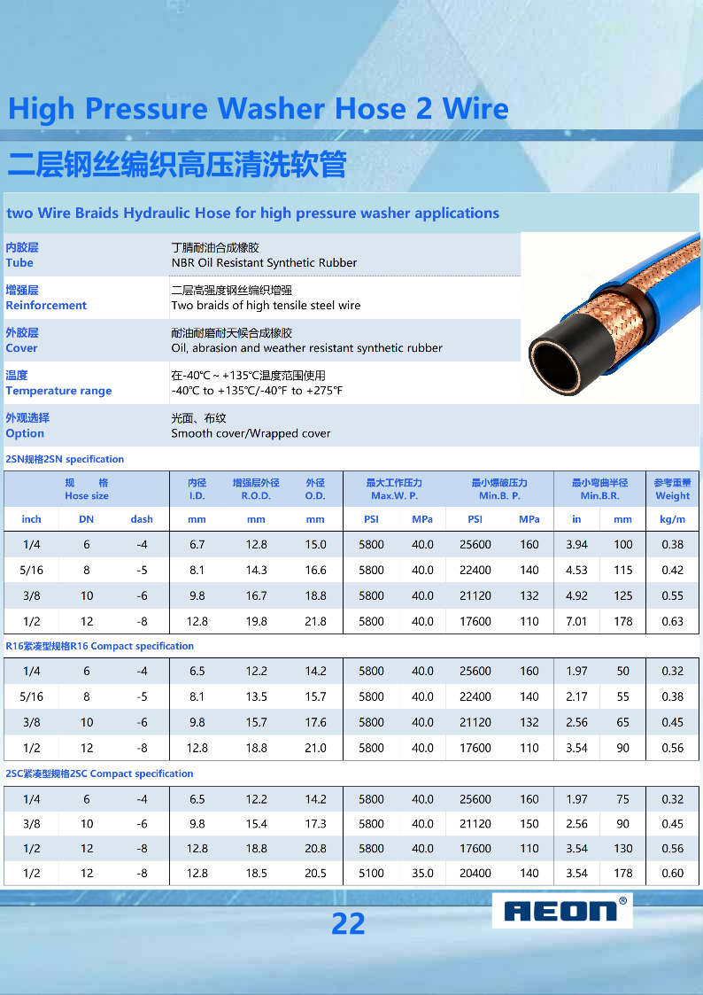 22 High Pressure Washer Hose 2 Wire