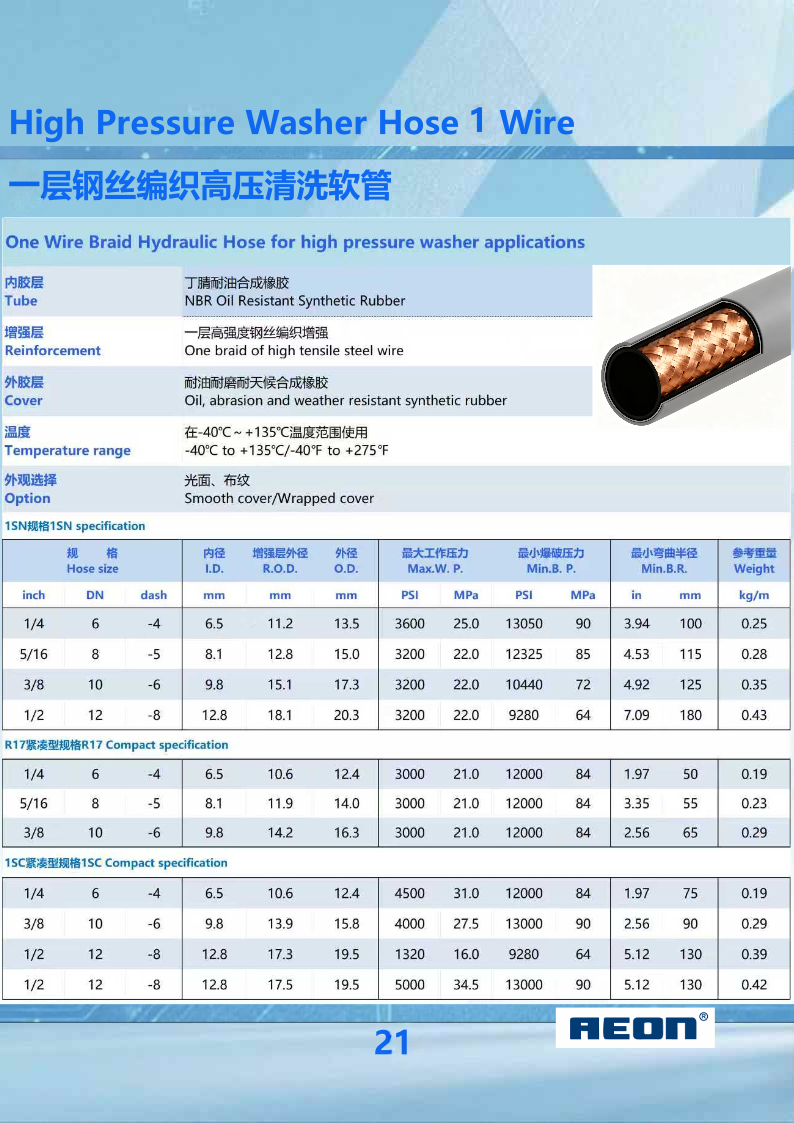 21 High Pressure Washer Hose 1 Wire