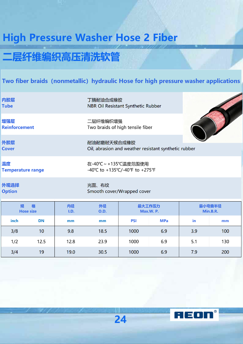 24 High Pressure Washer Hose 2 Fiber
