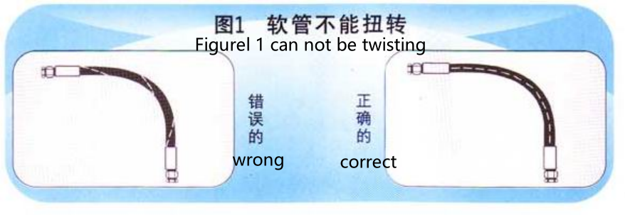 8.软管组合件在相同的水面出现移动或弯曲,通过合理的安装来避免软管扭转。(见图7)